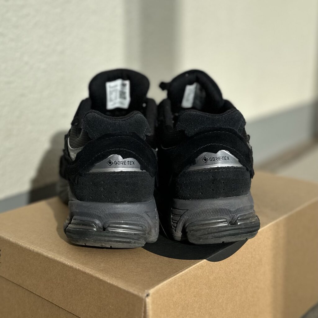 2002Rはもともとホールド感が強いモデルですが、GORE-TEX搭載モデルは内部に防水メンブレン(膜)が張られているため、通常版よりもさらにややタイトに感じられます。